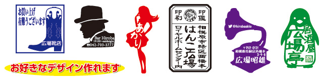 ご用途に合わせて様々なサイズで印面をお作りすることができます。ご希望のイラストも入ります。インクもお好みのお色をお選びいただけます。