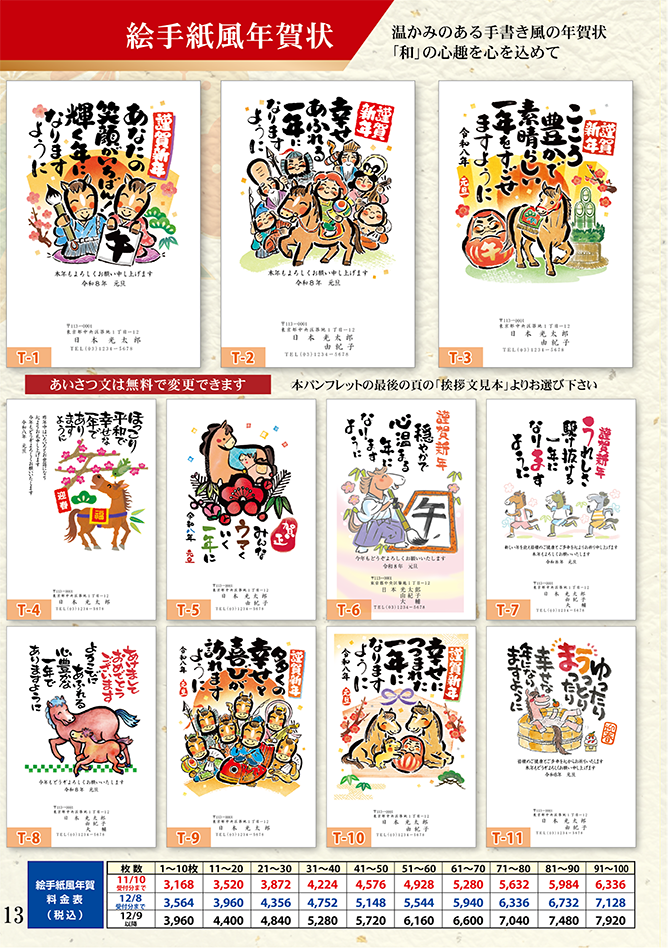 ◆自由挨拶文やロゴ入れ年賀状も作成できます!